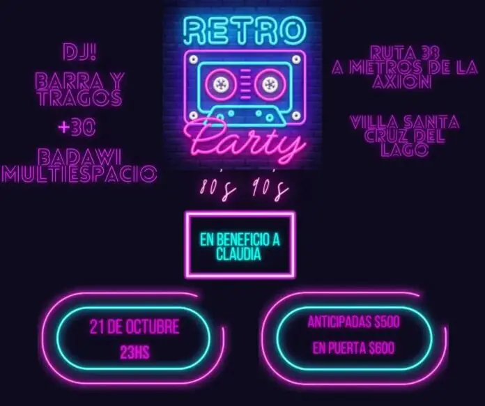 Se trata de una Fiesta ’80-’90 que servirá para ayudar a Claudia Román y su familia.