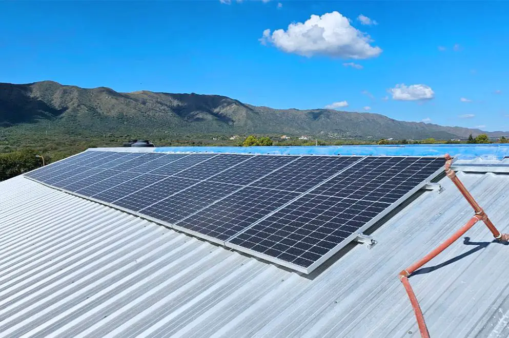 El sistema está conformado por un conjunto de 12 paneles solares -de un máximo de 465 vatios cada uno- y un inversor de tensión trifásico de 5.000 vatios de potencia de acople.