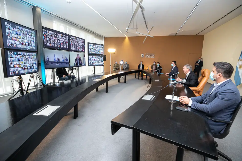 El gobernador, Juan Schiaretti, participó este viernes de una reunión por videoconferencia de la Mesa de Seguimiento Sanitario de la pandemia con los intendentes, intendentas y jefes comunales de toda la Provincia.