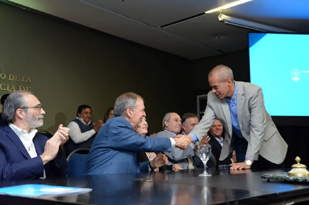 En la ocasión además se firmó el convenio marco que contempla la creación del fondo para conexiones domiciliarias. El acuerdo fue rubricado por el ministro de Agua, Ambiente y Servicios Público, Fabián López, Santiago Marfort de Ecogas, y el presidente del directorio de Bancor, Daniel Tillard.