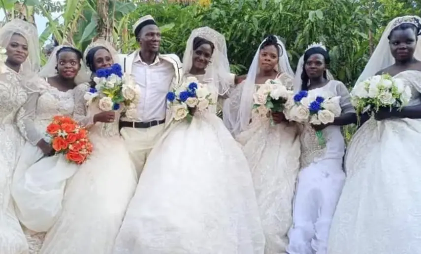 El ugandés Ssaalongo Nsikonenne Habib Ssezzigu, de 43 años, causó sensación en las redes sociales, ya que contrajo matrimonio con siete mujeres el mismo día. Lo más peculiar de este caso es que dos de ellas son hermanas biológicas.