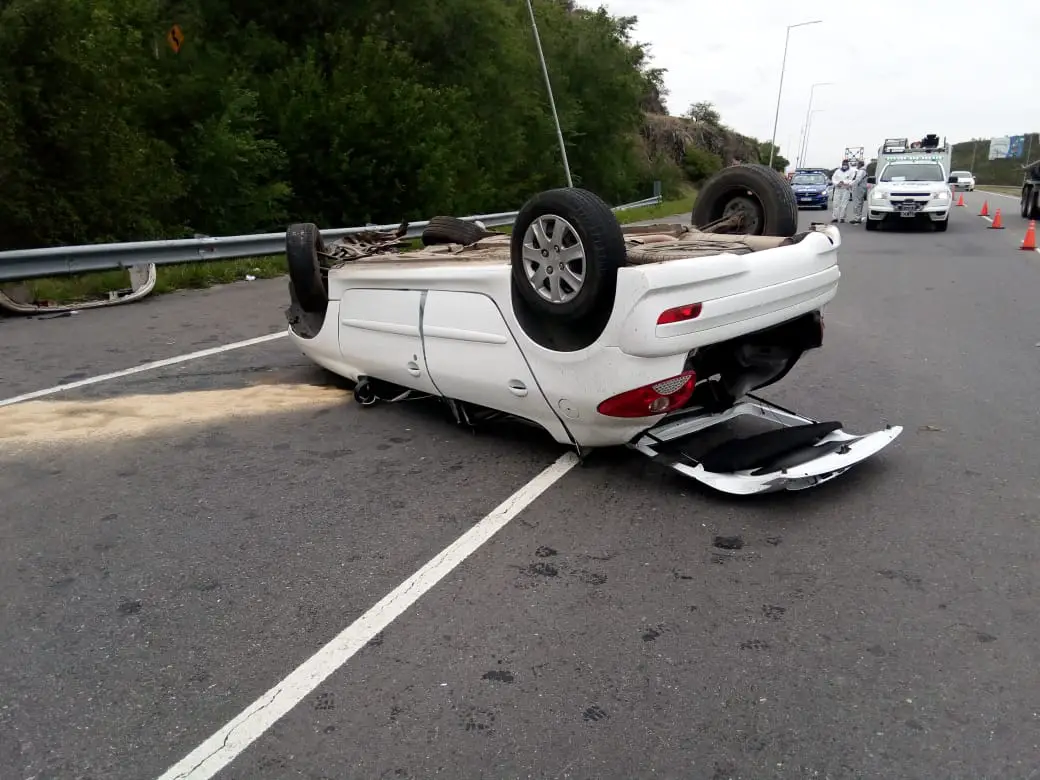 Por motivos que se investigan, el conductor perdió el control del rodado, impactó contra una columna, empezó a dar tumbos y terminó volcado sobre uno de los carriles, en sentido hacia Córdoba y a la altura de la cementera Holcim.