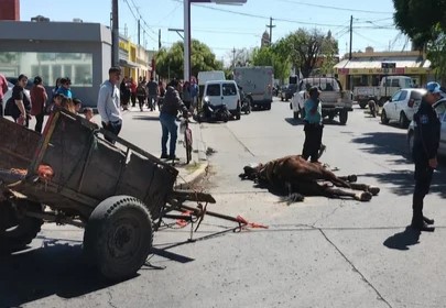 Un carro era tirado por dos caballos en Río Cuarto. Uno de los animales se desplomó en la calle y el hombre fue puesto a disposición de la Justicia por violación a la Ley Sarmiento, informó Cba24n.