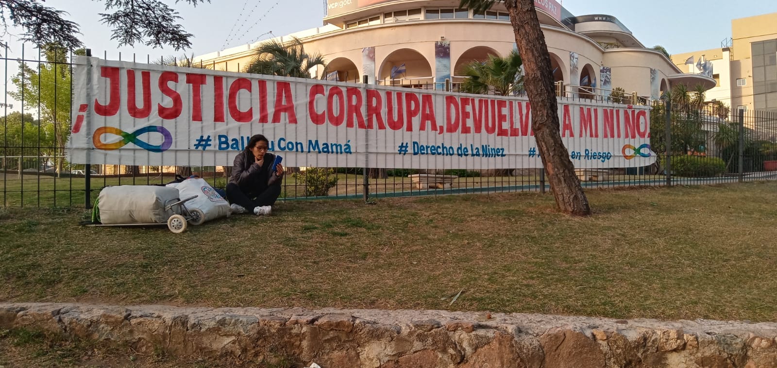 Carlos Paz: No ve a su hijo hace tres meses y se encadenó en una plaza para pedir justicia