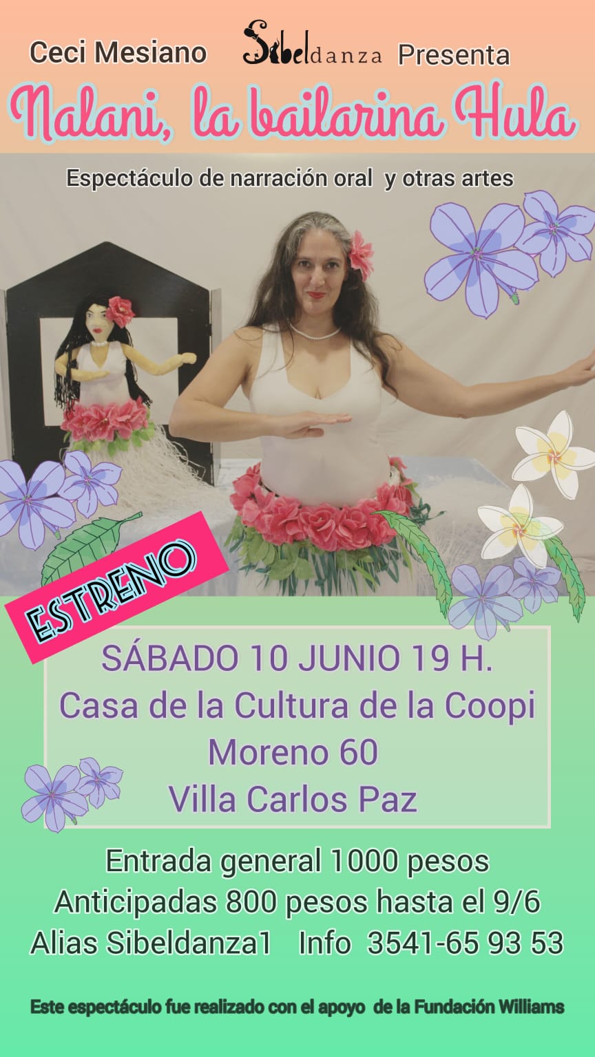 “Nalani, la bailarina hula”, espectáculo de narración oral y otras artes, se estrenará este sábado 10 de junio a las 19 hs, en Casa de la Cultura de la Coopi (Moreno 60) de Villa Carlos Paz.