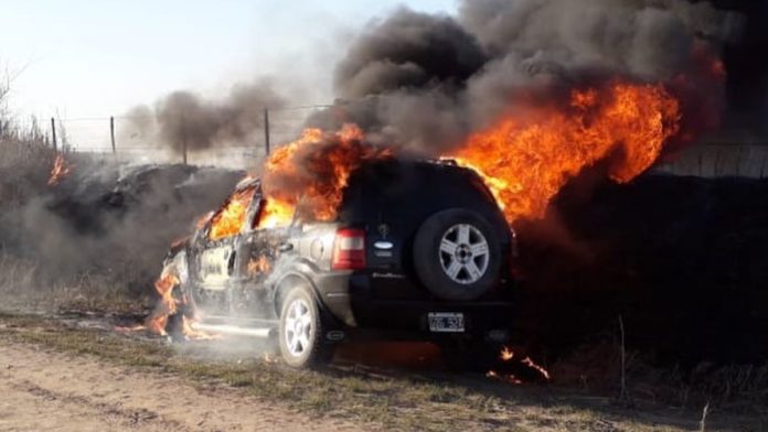 Un incendio se registró este jueves en un vehículo Ford Ecosport que derivó en su propagación sobre un lote con pastizales. Sucedió en un sector rural ubicado entre las localidades de La Carlota y Santa Eufemia, Córdoba.
