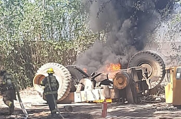 Según informaron desde el cuartel, el vehículo de gran porte esta siendo desarmado cuando, por motivos que deben esclarecerse, comenzó a incendiarse el tanque de combustible del rodado.