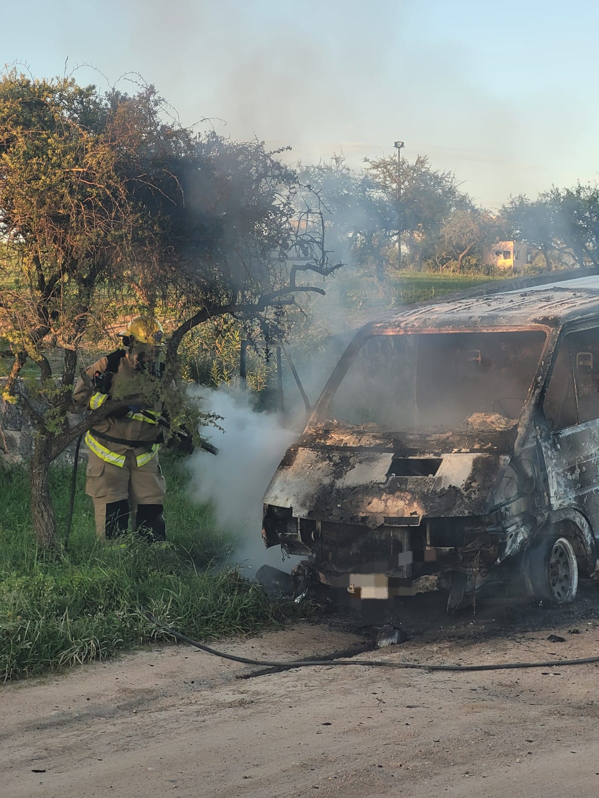 Un vehículo utilitario Renault Trafic se incendió durante la mañana de este viernes 27 de diciembre en el sector del Monumento Indio Bamba, en jurisdicción de Estancia Vieja.