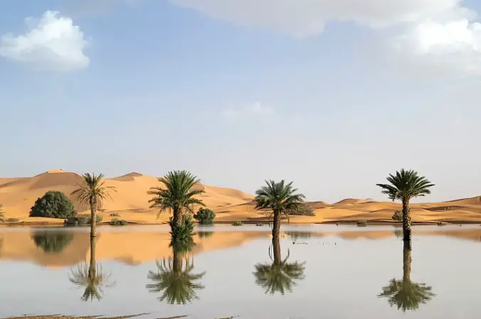 Según informa TN, el Sahara es objeto de postales inéditas de lagos en medio de las dunas debido a un fenómeno que no se producía desde hace 50 años en este lugar entre los más áridos y estériles del mundo.