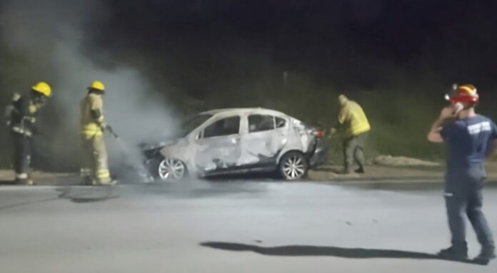 Cerca de la medianoche de este sábado, personal policial fue alertado sobre un incendio de vehículo en la Ruta Nacional 38, en las cercanías de Santa Cruz del Lago. Al llegar al lugar indicado, los agentes encontraron un Fiat Cronos envuelto en llamas.