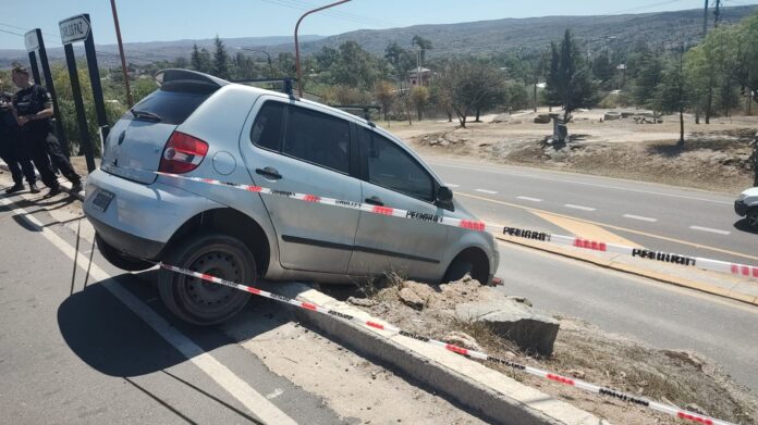 Luego del mediodía de este martes, ocurrió un hecho que podría haber terminado en tragedia en la localidad de Tanti. Allí, a un vehículo que estaba estacionado se le soltó el cambio y quedó colgado en el muro que separa la ruta 28 con el camino a Cabalango.