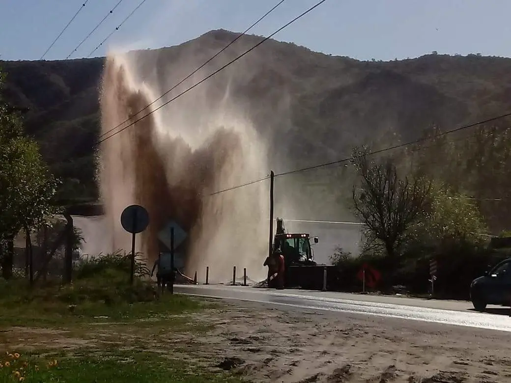 La empresa Chediak, que tiene a su cargo las obras viales en el ingreso a San Antonio de Arredondo, rompió el caño del acueducto en horas de la mañana.