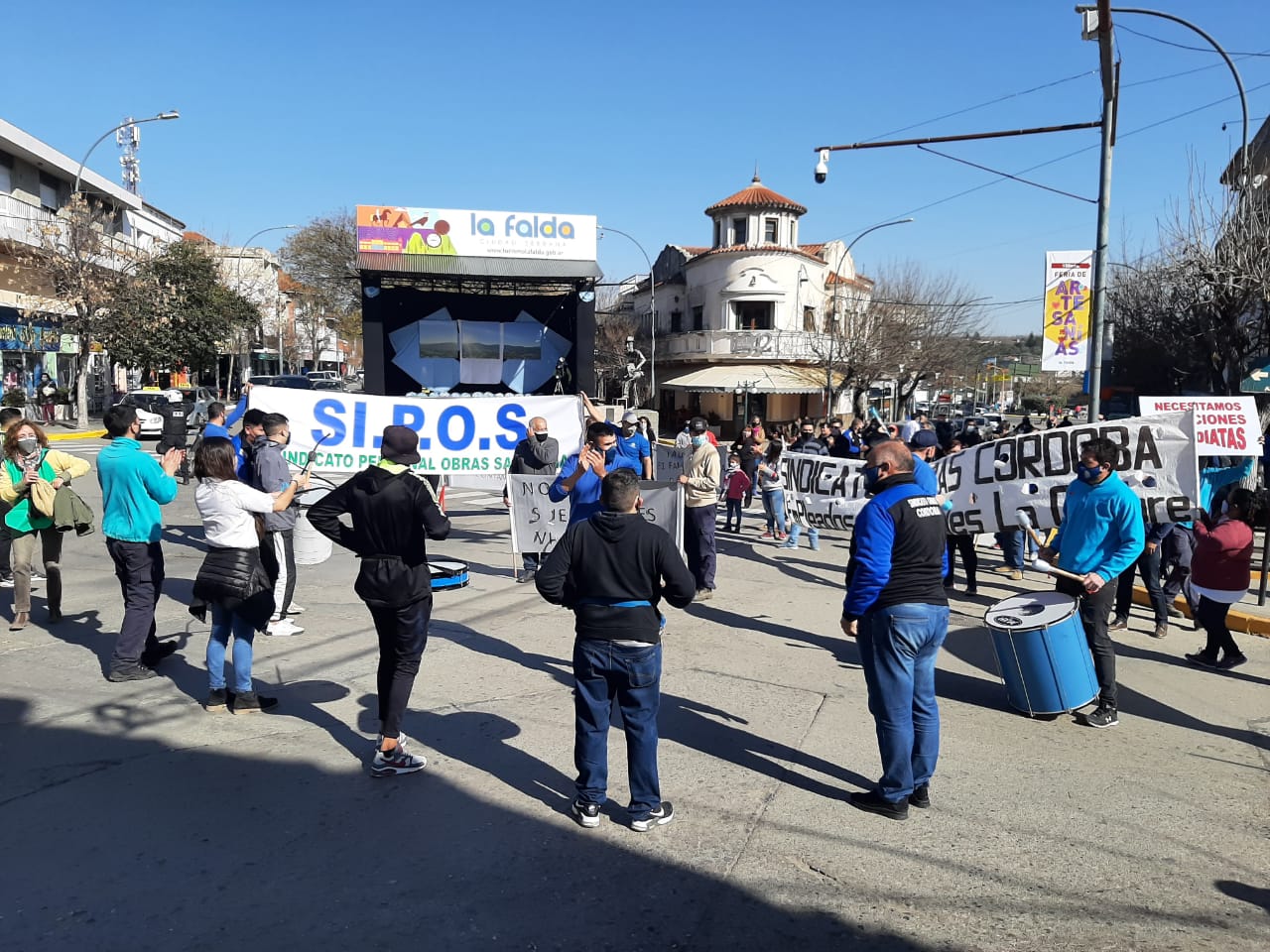 Trabajadores de Arcoop-Cuencas Serranas agrupados en el Sindicato de Personal de Obras Sanitarias de Córdoba (SiPOS) y el Sindicato Obras Córdoba (SOC) protestaron por tercera vez en la semana en la Falda, en una manifestación que incluyó una marcha por el centro de la ciudad y el corte de media calzada de la Ruta 38 frente al edificio de la municipalidad.