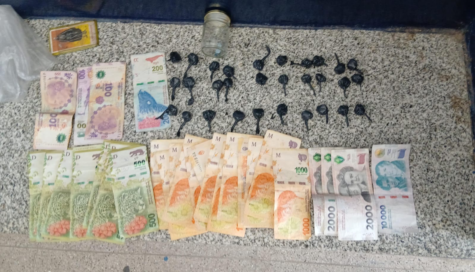 Asimismo, se secuestró otro envoltorio con una sustancia presuntamente correspondiente a clorhidrato de cocaína, además de dinero en efectivo cuyo monto será determinado.
