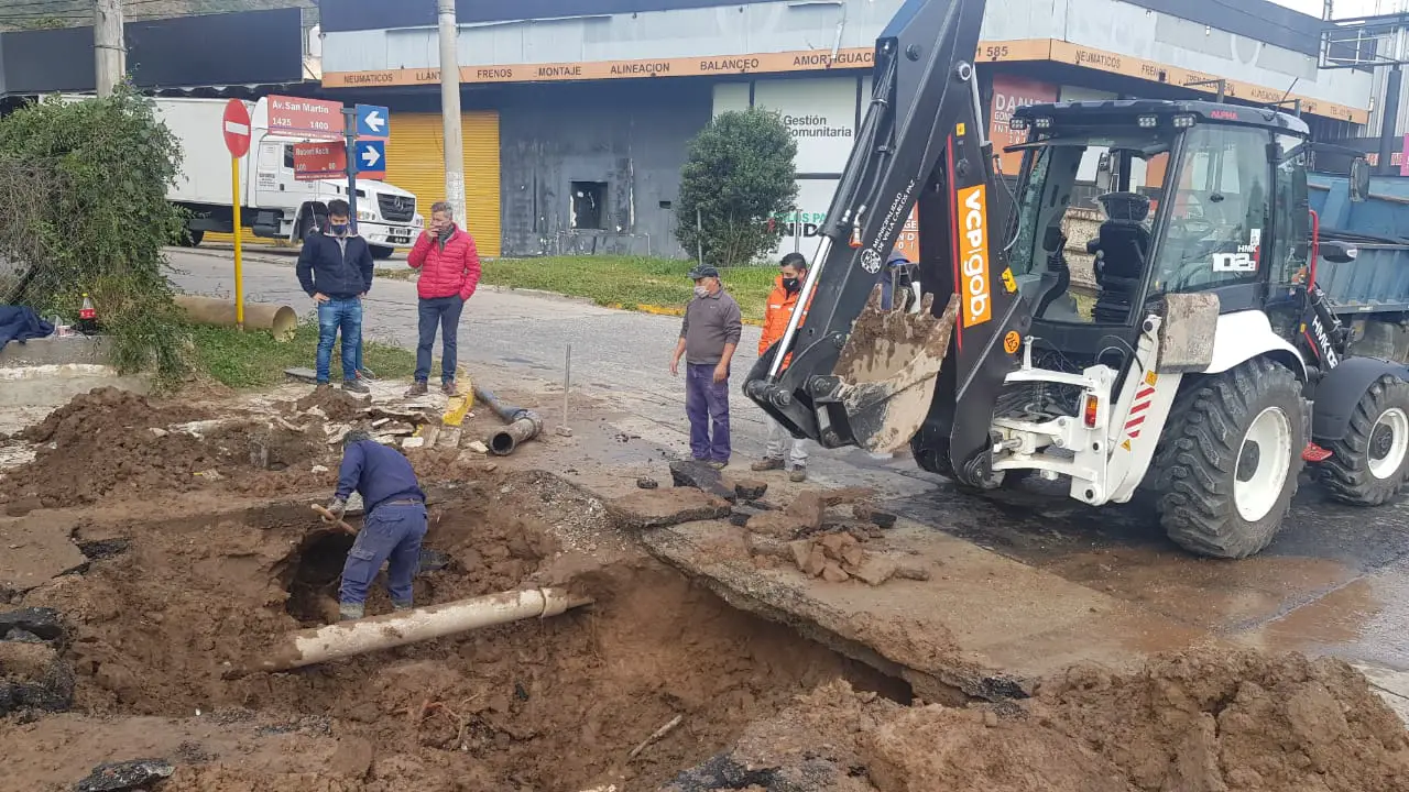 Este lunes a la mañana, se produjo la rotura de un caño de agua potable ubicado sobre avenida San Martín y Gabriela Mistral, por lo que son varios los barrios que se encuentran con el servicio restringido hasta tanto solucionen el problema.