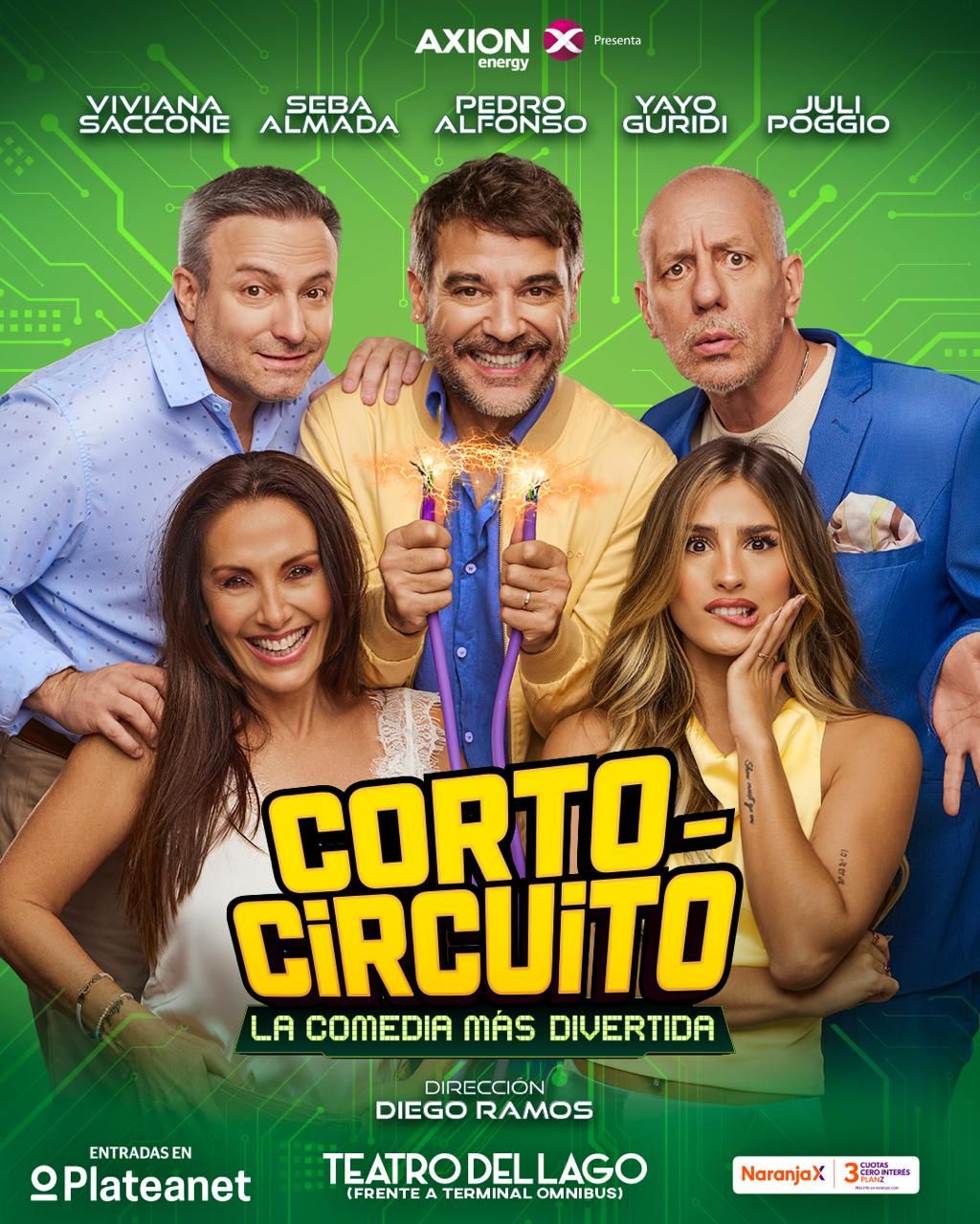 También la comedia “Corto-Circuito”, en el Teatro del Lago, con un elenco encabezado por Pedro Alfonso junto a Yayo Guridi, Viviana Saccone, Seba Almada, y Juli Poggio, con dirección de Diego Ramos.