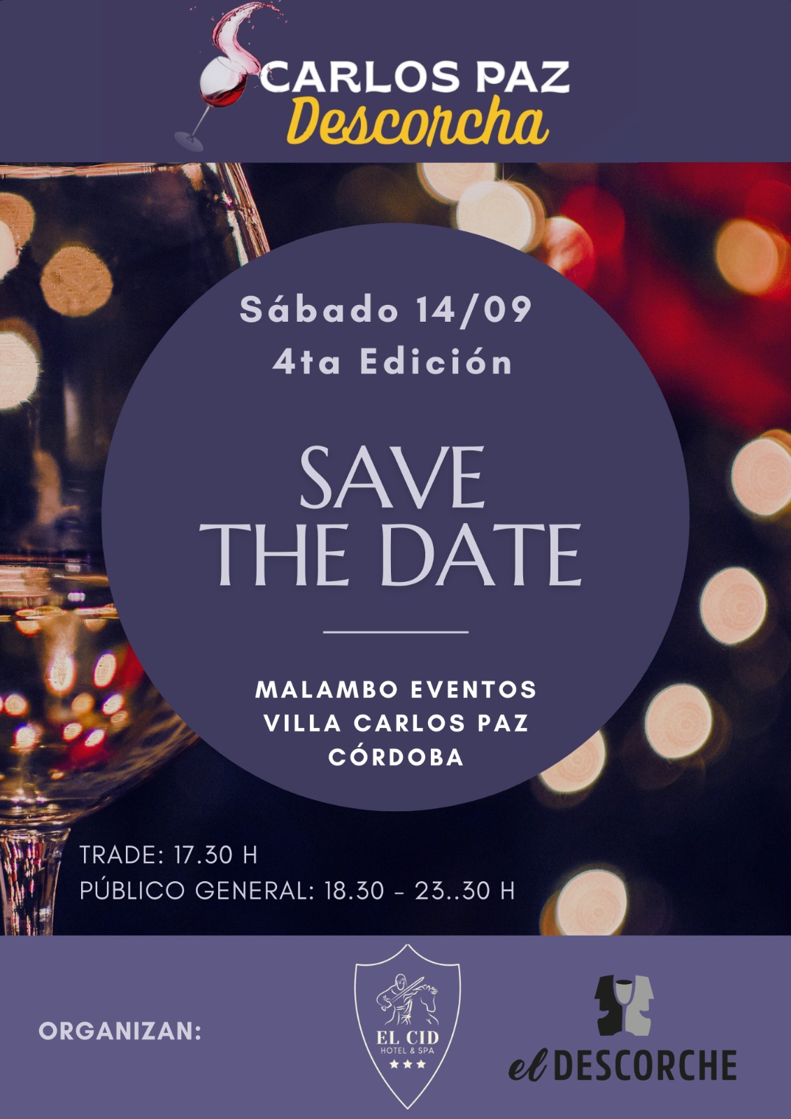 Organizada por el periodista mendocino Gustavo Flores Bazán y el partner local, el empresario Rodrigo Serna, la 4ta. Edición de Carlos Paz Descorcha se realizará el sábado 14 de septiembre en Malambo Eventos, un multiespacio estratégicamente ubicado frente al Lago San Roque e ideal para albergar a todas las bodegas expositoras. Un lugar ideal para disfrutar del vino, pero también de la gastronomía, el aceite de oliva y un ambiente ideal para disfrutar con amigos.