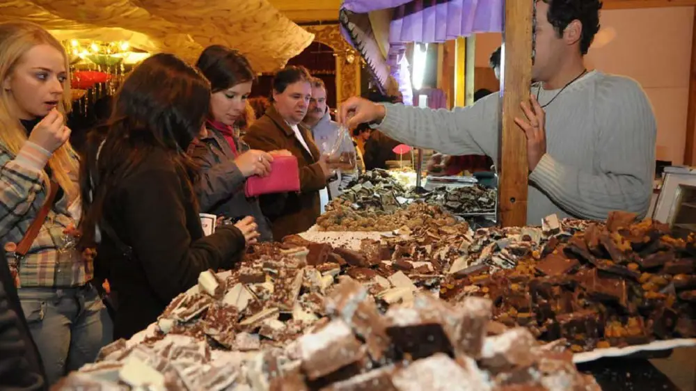 Una de las principales tradiciones de la fiesta es la fondué de chocolate. Esta constituye un momento muy esperado por el público cada tarde. Los asistentes reciben unos pinches con frutas frescas que luego pueden sumergir en la paila con chocolate caliente.