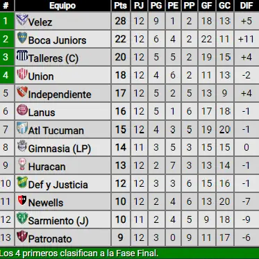 Por el lado de Talleres, el punto los depositó en el tercer lugar con 20 unidades por lo que dependen de sí mismos, en la última fecha ante Lanús, para lograr la clasificación que de terminar con las mismas ubicaciones, mediría a El Matador ante San Lorenzo en los playoffs.