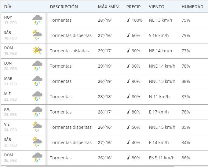 Inicio La Ciudad Se vienen días de tormenta La Ciudad Se vienen días de tormenta Por Santiago Berioli - 17 febrero, 2017 Compartir Facebook WhatsApp Telegram El pronóstico indica que toda la zona oeste y noroeste de la provincia de Córdoba se verá afectada por diversas tormentas por los próximos 10 días. A llevar el paraguas… Artículo relacionadosMás del autor Corte de luz afectará a gran parte de Carlos Paz, Malagueño, Tanti, Cabalango, Estancia Vieja y Santa Cruz del Lago este miércoles Cuánto costará el transporte en Carlos Paz en 2026: nuevos precios de colectivos, taxis y remises Sol a pleno este martes en Carlos Paz tras una mañana fresca, el miércoles será ventoso