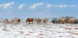 Insólito: El desierto de Arabia Saudita se cubre de nieve por...