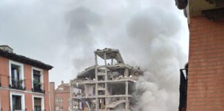 Una fuerte explosión destruyó un edificio en el centro de Madrid