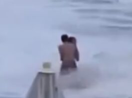 Una pareja se metió al mar, la mujer fue arrastrada por una ola y desapareció: Todo quedó grabado en un video