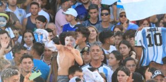 Cientos de fanáticos esperan el saludo de Julián Álvarez en Carlos Paz