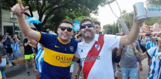 Cientos de fanáticos esperan el saludo de Julián Álvarez en Carlos Paz
