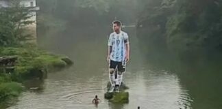 Locura por Messi: Colocaron una gigantografía en el medio de un...