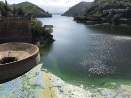 Impactantes imágenes aéreas de las algas en el lago San Roque