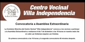 El Centro Vecinal Villa Independencia convoca a Asamblea Extraordinaria
