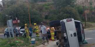 Tanti: Una camioneta volcó tras un choque en la Ruta 28