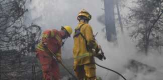El arduo trabajo de los bomberos para contener el fuego en...