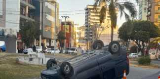 Violento choque y vuelco en pleno centro de Carlos Paz