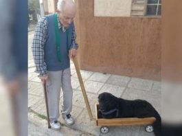 Un abuelo le fabricó un carrito a su perro enfermo que ya no podía caminar