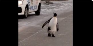 Las increíbles postales de la Patagonia bajo nieve: Pingüinos deambulando por...
