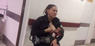 La foto de una mujer policía amamantando a un bebé desnutrido...