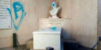 Con pintadas, atacaron el mausoleo de Raúl Alfonsín en el Cementerio...