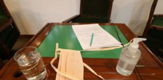 Sesión con alcohol y barbijo