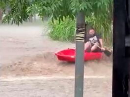 Cordobés salió a navegar en kayak por las calles inundadas (Video)