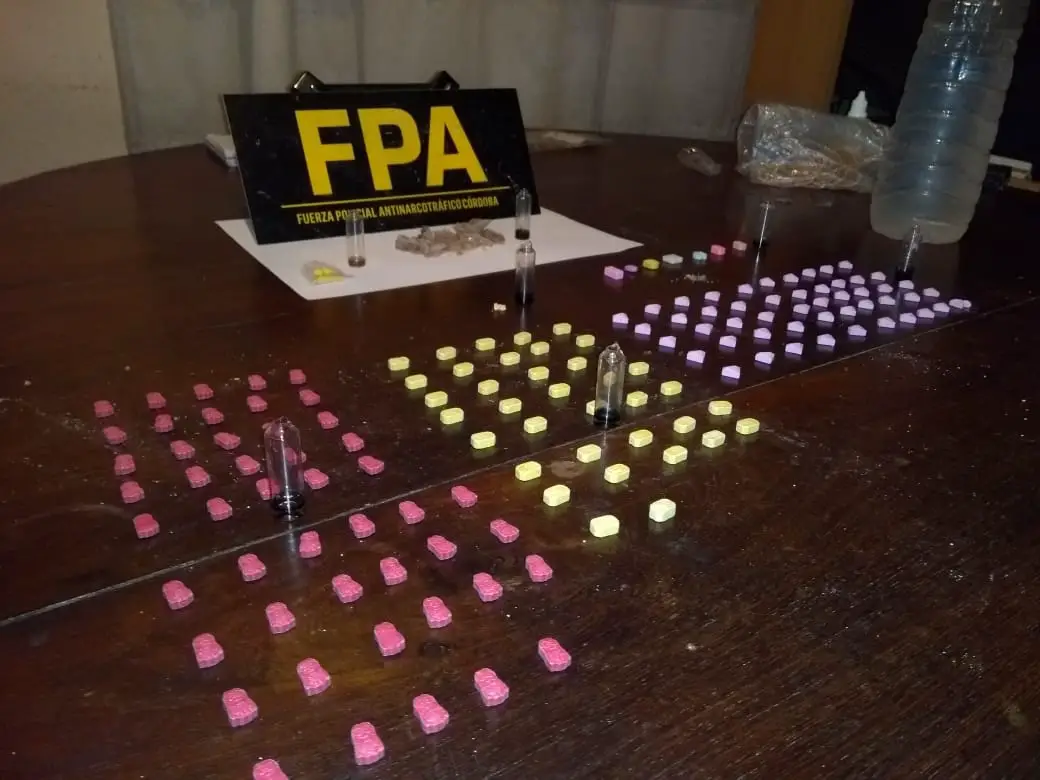 Seguidamente se allanó el domicilio del mismo -ubicado en calle Punilla al 200- lugar donde con la ayuda de un can detector del equipo K9 Antinarcóticos, se hallaron ocultos en diferentes lugares del inmueble envoltorios que contenían: 1.396 dosis de marihuana, 143 pastillas de éxtasis (MDMA), diez dosis de cocaína, 30 gramos de cristal (metanfetamina) y una pastilla de anfetamina.