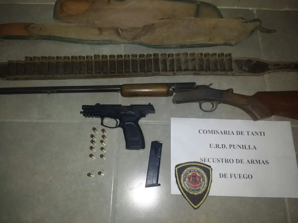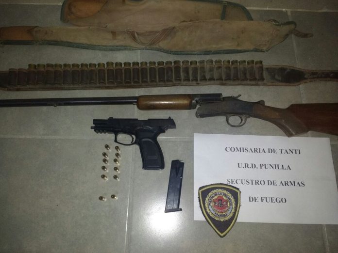 En la tarde del martes la policía logró incautar en un allanamiento en la localidad de Tanti, una pistola de 9mm y una escopeta calibre .16.
