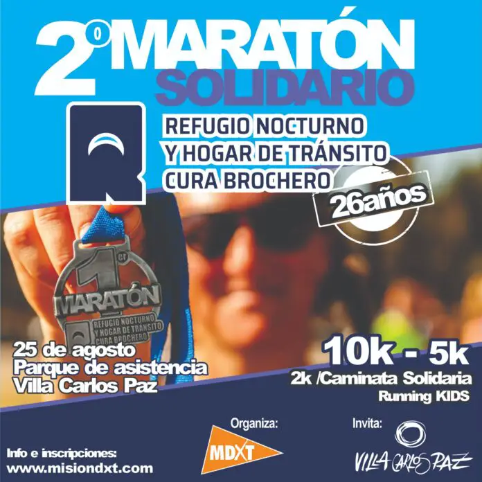 El Refugio Nocturno y Hogar de Transito Cura Brochero de la Ciudad de Villa Carlos Paz invita a la población a participar de la 2° edición del Maratón Solidario para disfrutar en familia, sobre la costanera de la ciudad y a orillas del Lago San Roque.