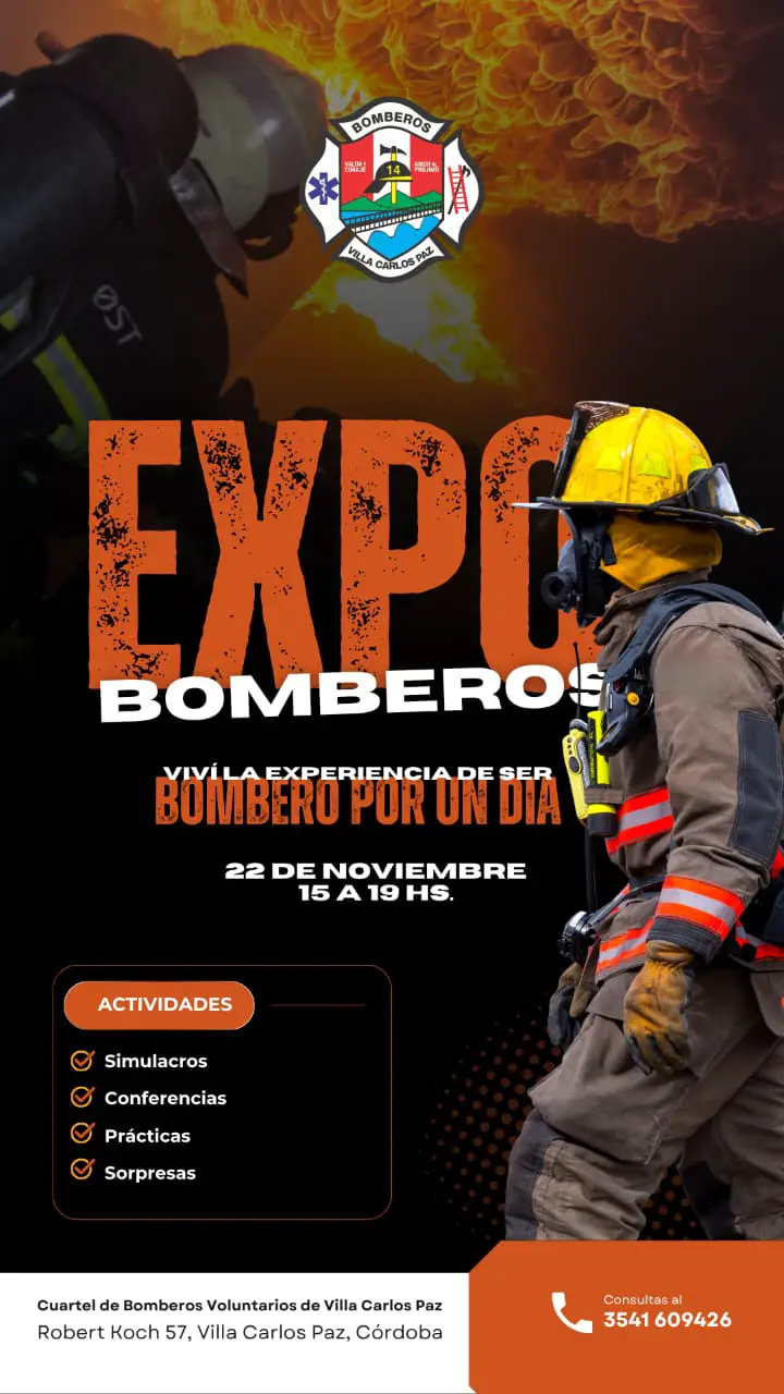 Con un fin de semana XXL cada vez más cerca, las actividades comienzan a multiplicarse en Villa Carlos Paz. Y una de las propuestas que promete captar la atención de grandes y chicos es la primera edición de la Expo Bomberos, un evento abierto a toda la comunidad que se realizará el sábado 22 de noviembre, de 15 a 19, en el Cuartel de Bomberos Voluntarios, ubicado en Robert Koch 57.