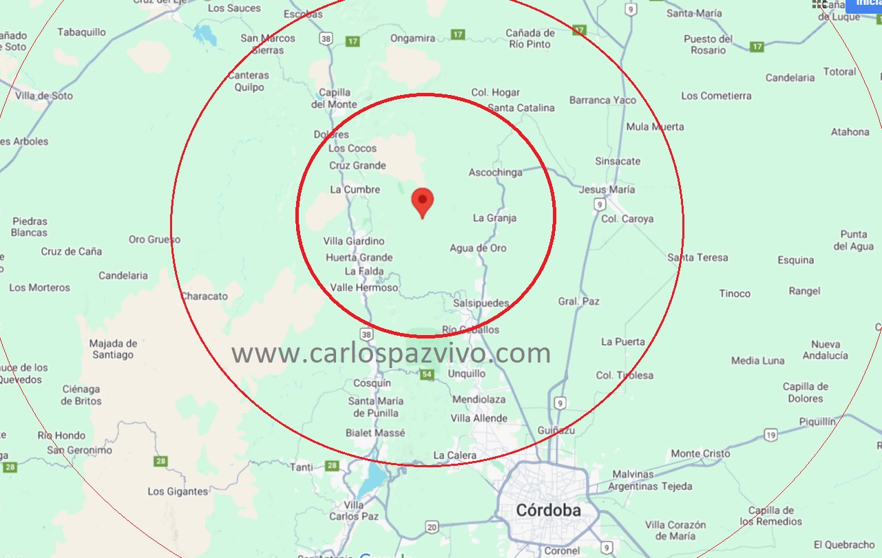Según las coordenadas brindadas por el Insitituto de Prevención Sísmica, el epicentro se ubicó en las sierras chicas, justo entre Villa Giardino y La Granja,