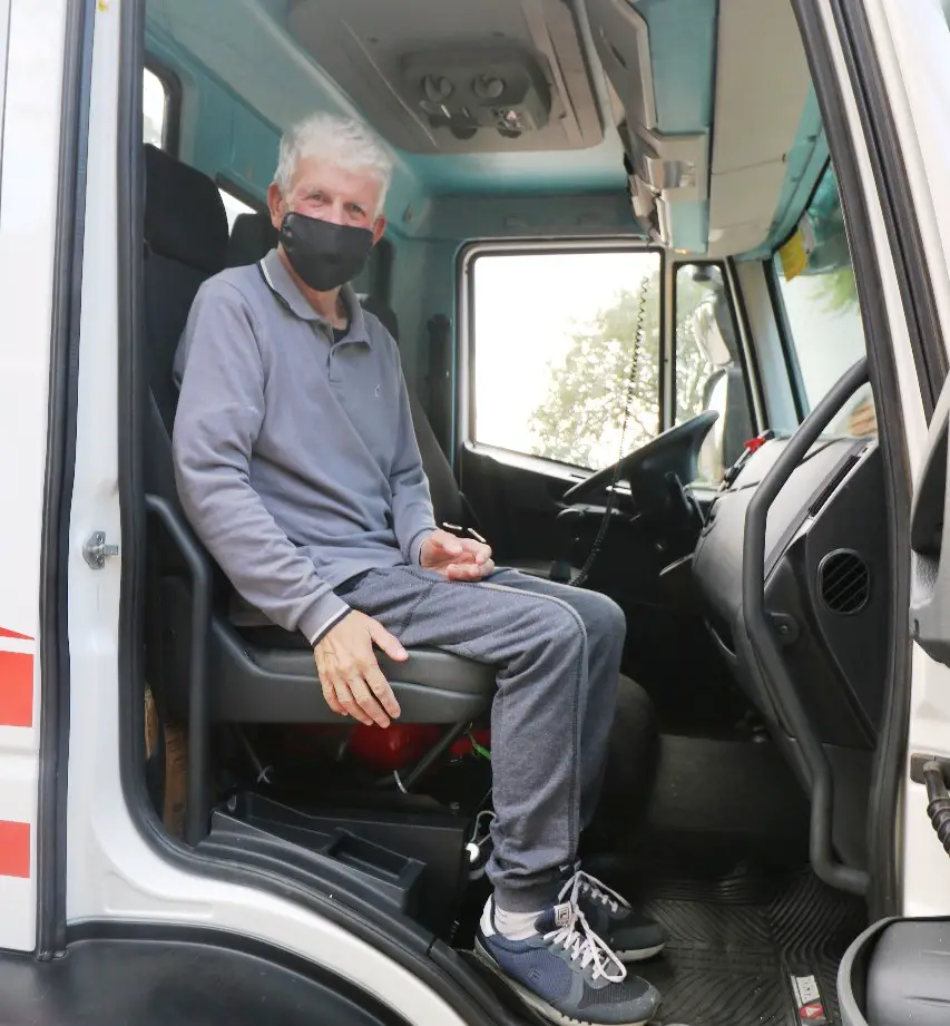 Salidos raros, sin abrazos ni besos. La maldita ‘distancia social’ enfriando todo. Pablito subiendo sin ayuda a la autobomba y posando para la foto: