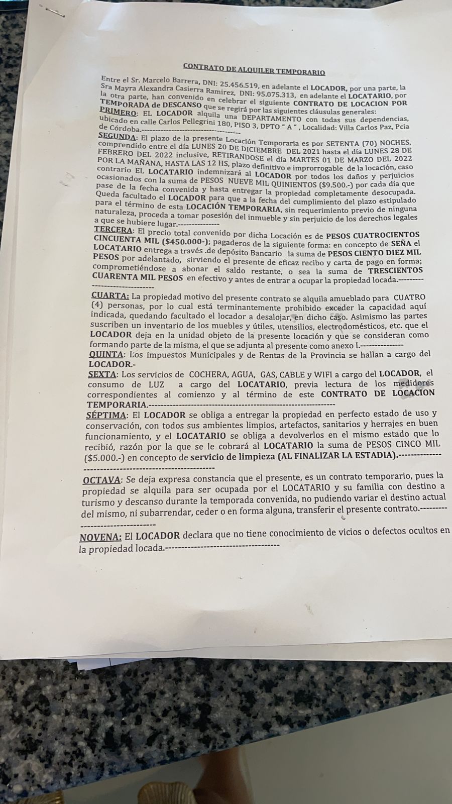 Y continuó: “Les dije por teléfono que se queden tranquilos, que somos una inmobiliaria con 10 años de trayectoria en Carlos Paz y que todo estaba en orden. Cuando vieran el departamento, iban a sentirse tranquilos. De esa manera se calmaron”.