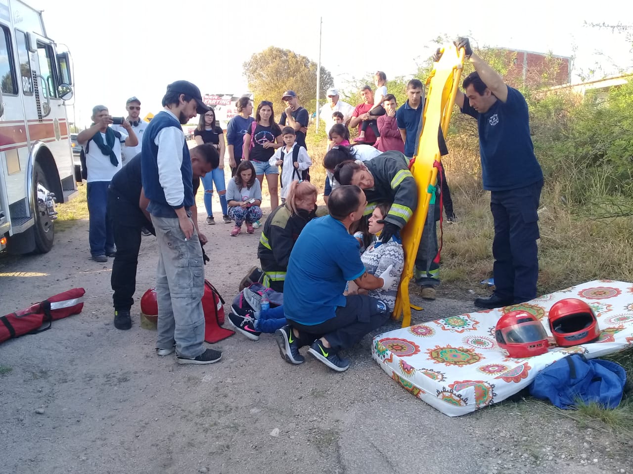 En el lugar, las motociclistas fueron asistidas primeramente por personal de los Bomberos Voluntarios de Carlos Paz, la Policía y Seguridad VCP.