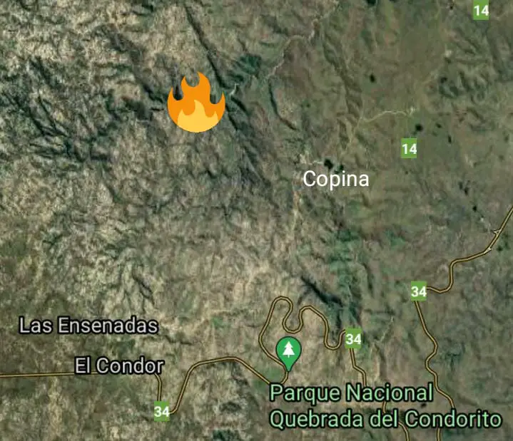Este lunes a la tarde, un nuevo foco ígneo se desató en las sierras de Córdoba. Esta vez, el fuego se ubica en inmediaciones de Copina.